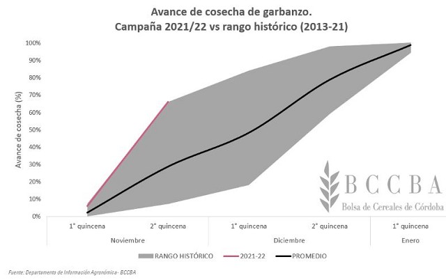 Para la campaña actual, se estimó un área sembrada con garbanzo de 24.700 hectáreas, superficie notablemente menor a campañas anteriores.