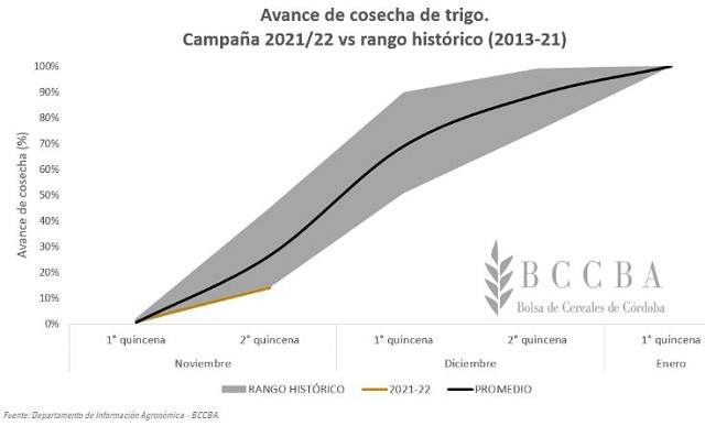 Así, se llega a la estimación de 3.382.700 tn de trigo producidas en la provincia de Córdoba, siendo un 84 % superior a la campaña 2020/21, aunque un 13 % inferior comparando respecto al promedio histórico.