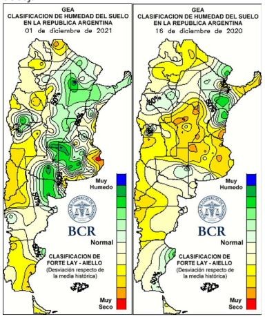 Unos 50 milímetros más despejaría preocupaciones, pero no es lo que se espera que suceda en los próximos quince días de diciembre. El Dr. Aiello y el consultor Elorriaga indican que "el enfriamiento del Pacífico no desapareció, por el contrario el índice ONI, que indica la anomalía de la temperatura superficial del océano, muestra un mayor enfriamiento (-0.8 respecto de –0.7 del mes pasado). La anomalía positiva de las lluvias durante noviembre fue poco habitual bajo condiciones de enfriamiento del Pacífico, y difícilmente pueda repetirse durante diciembre. La reciente concentración de lluvias sobre el sudoeste de la región pampeana es producto de un bloqueo causado por la presencia, mucho más al sur de su posición habitual, del sistema de alta presión del Atlántico. Este escenario está provocando mayores condiciones de estabilidad y una disminución de las precipitaciones sobre el centro y este del país. Los modelos de pronostico indican que este mecanismo de escala regional se mantendrá aproximadamente hasta la segunda quincena del mes, por lo que cualquier cambio relevante en el régimen de precipitaciones se produciría recién durante la última década de diciembre"