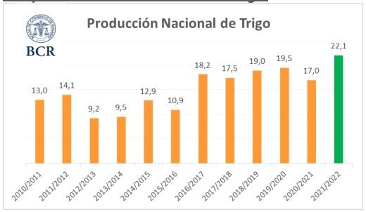 Era impensable, pero está sucediendo: el trigo 2021/22 superará por lejos el objetivo de los 20 Mt. La nueva estimación es de 22,1 Mt, cuando la mayor producción argentina fue la del 2019/20 con 19,5 Mt. Respecto al año pasado, habrá un 30% más de trigo
