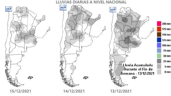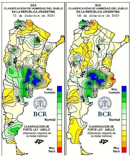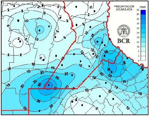 Las lluvias de los primeros quince días de diciembre nivelaron el aporte de agua en la región. En este último evento, Rufino marcó el mayor milimetraje, con 40 mm. Pergamino recibió 33 mm, Santa Teresa 30 mm y Pujato 24 mm. Si bien la franja oeste de la región recibió menos agua en el evento del martes, fue la que estuvo acumulando milimetrajes durante los primeros días de diciembre. En el sudeste cordobés comienza a haber interrupciones en las tareas de cosecha de trigo y siembra de soja de segunda por la falta de piso. Sobre el sur de Santa Fe y norte de Buenos Aires, el cambio de las condiciones atmosféricas de la última tormenta fue tan repentino y abrupto que provocó consecuencias muy poco deseadas. En la franja que abarca desde María Teresa, Villa Cañas, Teodelina hasta Colón, la tormenta dejó algo más que agua. Viento muy fuerte y una gran granizada devastó una gran cantidad de lotes de maíz y soja.