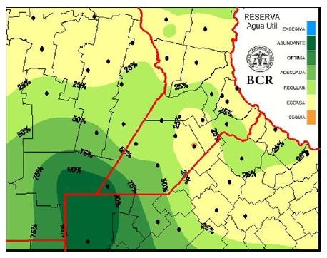 Mejoran las reservas de agua para los cultivos, pero aún falta Los primeros maíces sembrados a mediados de septiembre ya se encuentran transitando su ventana crítica porque están en plena floración masculina. Cualquier stress en esta etapa adquiere mayor relevancia, y el hídrico es uno de los principales. El agotamiento de las reservas de agua en el este de la región comenzaba a manifestarse en el cereal. En Cañada de Gómez se necesitaban 50 mm para pasar diciembre sin bajar el potencial de rinde. Si bien las últimas lluvias son un aliciente para el maíz, las reservas de agua continúan escasas en el centro sur de Santa Fe y el centro norte de Buenos Aires, zonas donde los registros fueron muy bajos por estos días. En San Pedro, el día lunes, los asesores expresaban la necesidad de una lluvia inminente para mantener la potencialidad de los cuadros, y recibieron entre 35 a 55 mm, “Nos pusimos en carrera”, comentaban los técnicos luego de la lluvia. En el sudeste cordobés, los cuadros que no tuvieron problemas a la siembra están excelentes: “con 20 a 25 mm más de agua los maíces van a estar muy bien”, señalan.