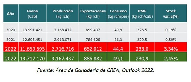 Fuente: Área de Ganadería de CREA, Outlook 2022.