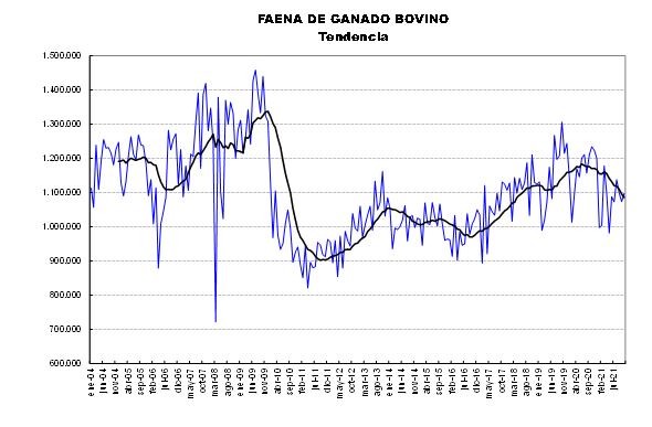 • Faena anualizada: cae 1 millón cabezas.