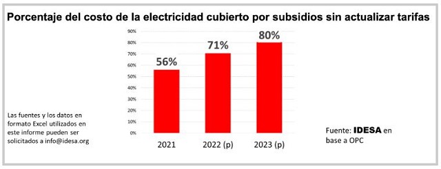 los subsidios pasarán a representar el 70% del costo de la electricidad.