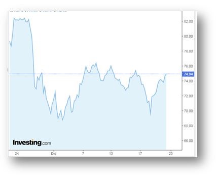En rigor, si vamos un poco más atrás, su precio comenzó a caer el 24 de noviembre pasado. Y al iniciarse este mes, logró cierta recuperación que luego siguió con un bajón.