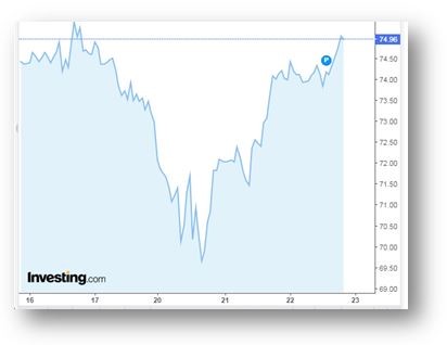 El gráfico que sigue muestra la evolución del Brent. Ahí vemos el rebote claramente.