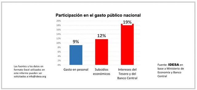 - El gasto en intereses pagados por el Tesoro y el Banco Central representa el