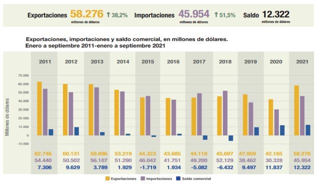 La Argentina es un país sustancialmente agroexportador, y en 2021 consolidó esa posición. En 9 meses de 2021 se llegó a exportar por más de 58.000 millones de dólares, un resultado exportador que no se observaba desde hace mucho tiempo, precisamente desde 2013.