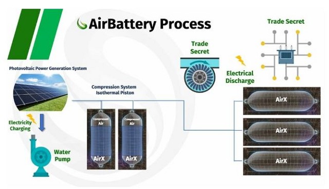 La «AirBattery» de Augwind tiene una eficacia del 80% en el almacenamiento de energía; un poco menos que las baterías de litio, pero a diferencia de éstas no se degrada con el tiempo.