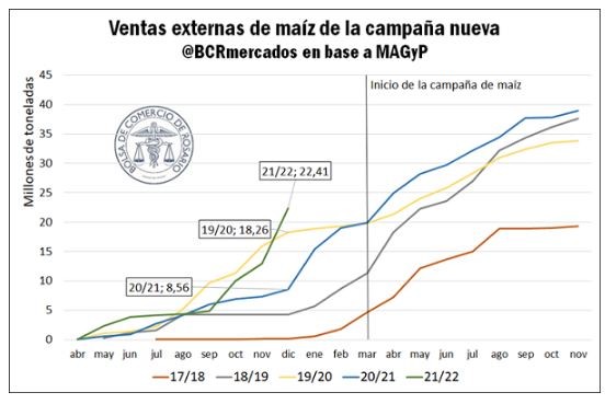 En maíz, en cambio, con ventas externas por casi 10 millones de toneladas