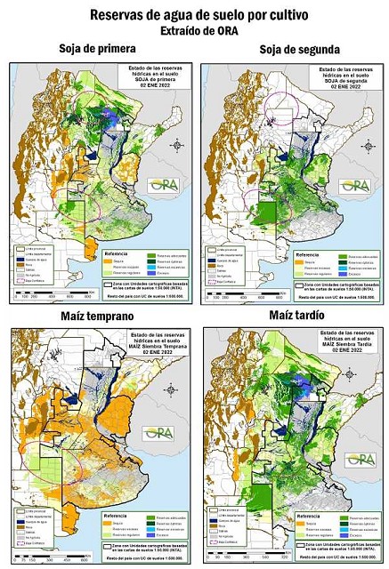 La falta de reservas de agua se ve con más énfasis en el maíz temprano y en la soja de primera, ambos en encaminándose a su etapa crítica para el desarrollo fenológico. No obstante, se mantienen buenos perfiles de humedad en la soja de segunda y en el maíz tardío, lo que permite de momento no perder el optimismo sobre estas variedades. No debe dejarse de lado que una amplia mayoría de las hectáreas sembradas con el grano amarillo consisten en maíz tardío, como se ha destacado en ediciones anteriores.