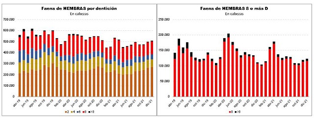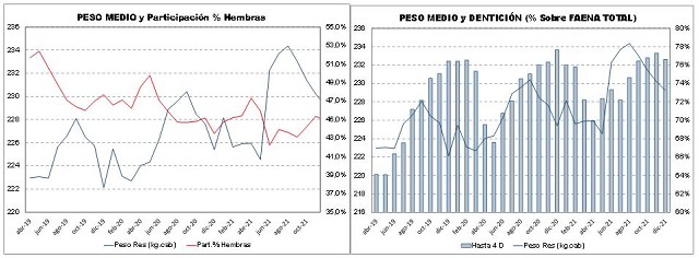 ‘’El peso medio de los bovinos faenados aumentó en el curso del año recientemente finalizado: fue de 210 kg/cabeza para las hembras y 246 kg/cabeza para los machos, en ambos casos superan los guarismos de 2020, consecuencia de una reducción en el sacrificio de hembras y de la menor presencia de animales más livianos, que se dio a comienzos de este año. El resultado de ello es un valor promedio de 228 kg/cabeza, 2 kg mayor a la media de 2020, resultado de un proceso virtuoso, indispensable para incrementar la producción nacional de carnes bovinas pero insuficiente por tratarse de índices significativamente menores a otros países proveedores del mundo. Su mejora requiere una transformación que no sólo permita el sacrificio de animales más pesados sino también un proceso genuino de recomposición de stocks que se refleje en la estructura de la oferta’’, sostiene Ravettino.