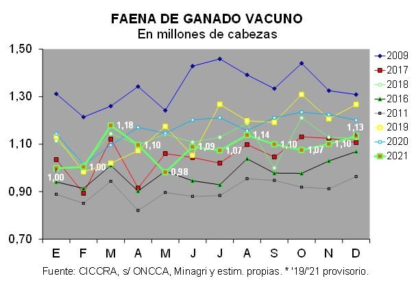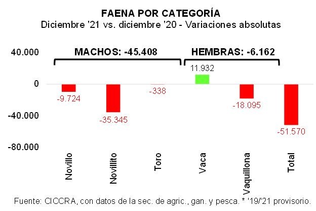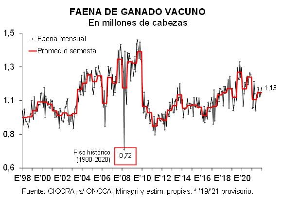 guarismos, en 2021 se faenaron 12,967 millones de cabezas, 7,4% menos que en