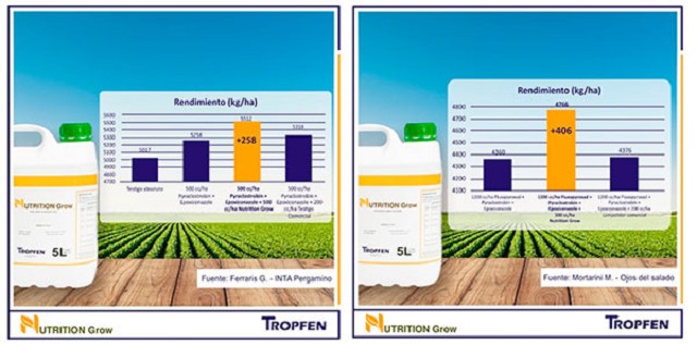 En Tropfen, desarrollamos Nutrition Grow, un bioestimulante que cuenta con un excelente balance. Se trata de una formulación equilibrada de Aminoácidos + Extractos de algas + Nutrientes acomplejados, altamente soluble en agua que permite revertir situaciones de stress, activar mecanismos de defensas y promover la movilidad del fungicida en la planta, colaborando en un mejor control de enfermedades en estas aplicaciones.