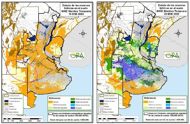 A causa de la sequía registrada a fines de primavera y comienzos de verano, lo cultivos tuvieron que atravesar el período seco, que usualmente se produce durante enero, con reservas hídricas escasas, por lo que sus resultados productivos dependerán en gran medida de un oportuno retorno de las lluvias durante el mes de febrero. Pero si, como muestran algunos pronósticos, el retorno de las lluvias se demora hasta mediados de marzo, las mermas de rendimiento podrían ser significativas.
