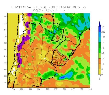 La perspectiva se iniciará con el paso de un frente de tormenta que cubrirá la mayor parte del área agrícola con precipitaciones de muy variada intensidad con sus focos sobre el norte y el sudeste de su extensión. Junto con el paso del frente, arribarán los vientos del sudoeste, causando mínimas por debajo de lo normal, en la mayor parte del área agrícola, a excepción de su porción centro-norte, que observará registros normales. Hacia el final de perspectiva, retornarán los vientos del trópico, iniciando una ola de calor sobre la mayor parte del área agrícola, a excepción de las zonas cercanas al litoral atlántico que experimentarán registros menos intensos.