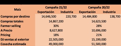 Cuando analizamos los datos del maíz, aparecen también datos interesantes: la