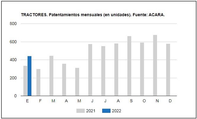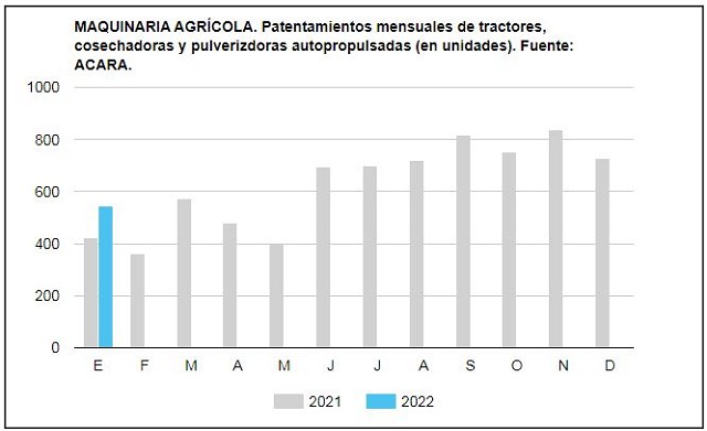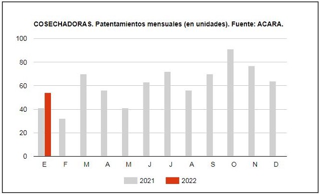 La maquinaria agrícola arrancó el año con un incremento de los patentamientos de unidades autopropulsadas de más de 29% respecto al primer mes de 2021.