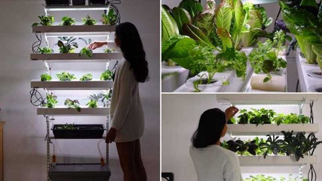 Con capacidad para albergar 120 plántulas comestibles, el sistema está orientado al cultivo vertical hidropónico.