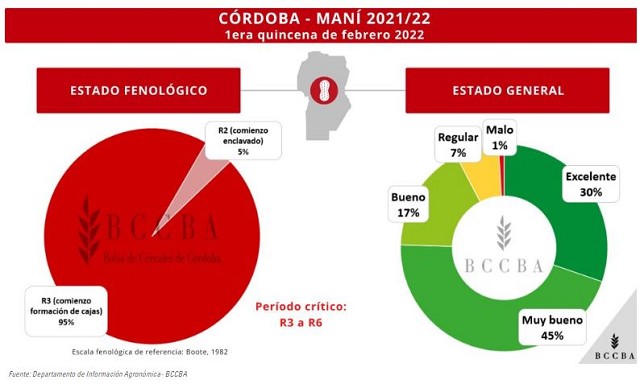 Dado su avanzado estadio y la rusticidad propia del cultivo, el maní se ha visto poco afectado por las condiciones adversas de enero, con pérdidas mínimas en comparación al resto de los cultivos estivales.