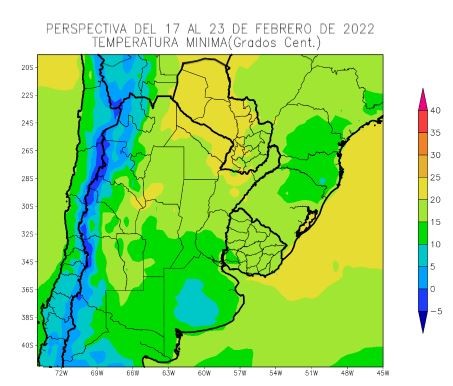 Al comienzo de la perspectiva se producirá el paso de un frente con muy poca actividad precipitante, cuyo único efecto será producir un marcado descenso térmico en la mayor parte del área agrícola, salvo su extremo centro norte. Los vientos del trópico retornarán rápidamente, provocando temperaturas elevadas sobre el norte y el centro del área agrícola, mientras que el sur y las áreas costeras recibirán vientos marinos que mitigarán los registros. Hacia mediados de la perspectiva, el paso de un frente de tormenta producirá precipitaciones generales de variada intensidad, con sus mayores registros sobre el noroeste y el centro del área agrícola.