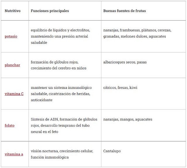 Como puede ver, no hay una sola fruta que tenga todos los nutrientes, por lo que
