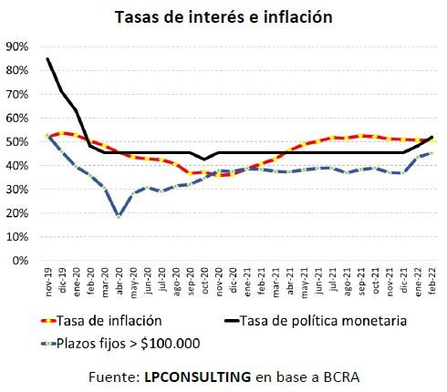 Como la inflación va en aumento (al 4% mensual hace una inflación de 60% anual), es de esperar que la tasa de política monetaria del Banco Central siga aumentando en el 2022 para que la tasa de los plazos fijos acompañe.