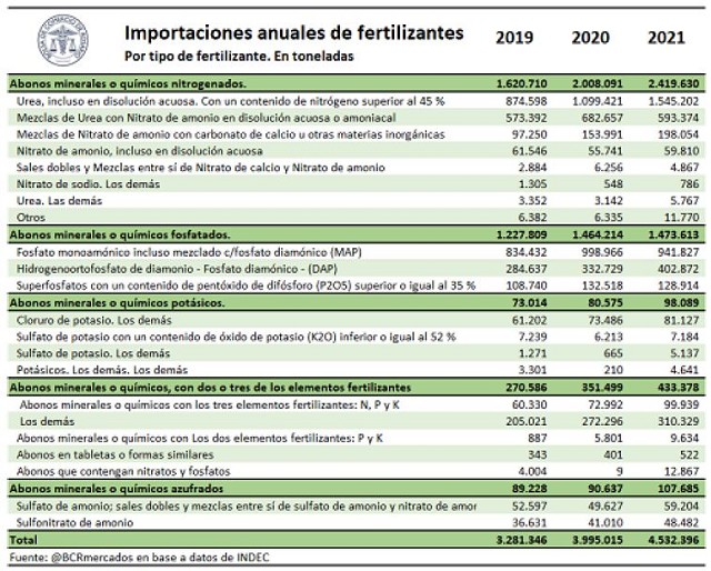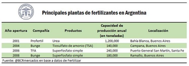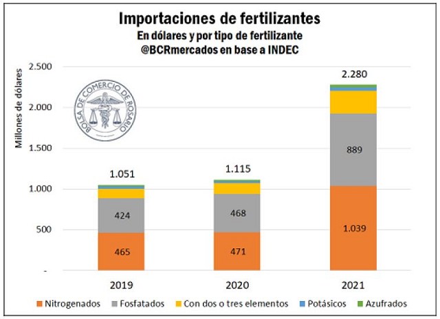 En este tema, no debe olvidarse la importancia de los fertilizantes fosfatados más allá de los nitrogenados como la urea. Si bien existe producción en Argentina de fertilizantes fosfatados, se requieren importaciones de roca fosfórica. Resulta necesario garantizar la provisión de esta materia prima importada para asegurar la producción local. El escenario podría ser aún más crítico si no se puede asegurar la importación de fosfatados en general.