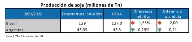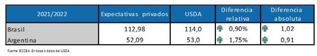 Para Brasil, el organismo norteamericano, proyecta una producción de 114 millones de toneladas contra los 113 millones de toneladas que esperaba el mercado. Para Argentina, la cosecha sería de 53 millones de toneladas, 910.000 toneladas por encima de lo esperado.