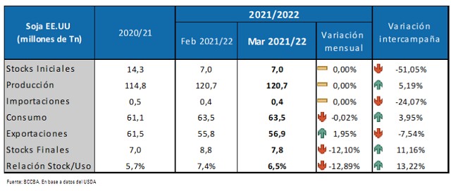Los stocks finales en Estados Unidos alcanzarían los 7,8 millones de toneladas, 200.000 toneladas por encima de lo esperado.