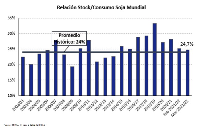 De esta manera, la relación stocks/consumo se ubica en el menor nivel de las últimas 8 campañas.