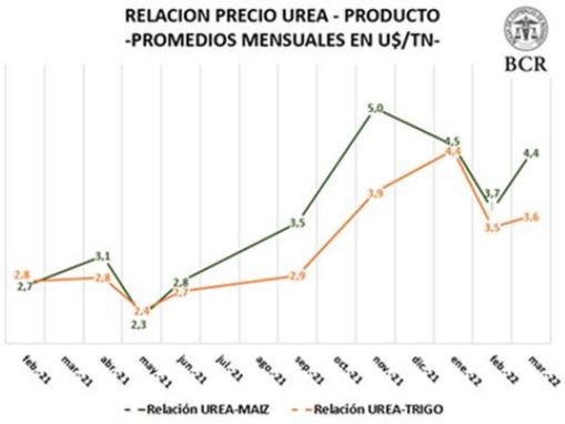 una vez más la relación insumo/producto (precio de la tonelada de urea/precio de