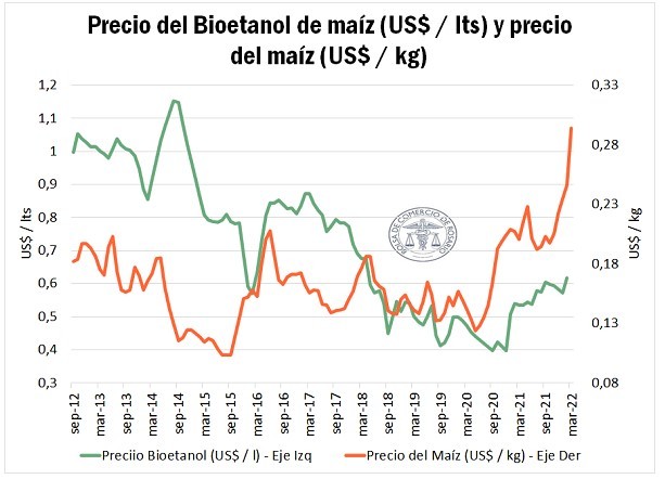 Sin embargo, para ese momento aún no se había desencadenado el conflicto entre Rusia y Ucrania que generó una gran convulsión en los mercados de granos. Desde entonces, el cereal registró un aumento aproximado del 20% en dólares arribando a US$ 0,29/kg en el mercado de Chicago. Por lo cual, de no obtenerse un recorte en las subas en las próximas semanas, sería muy necesario un nuevo aumento en el precio del bioetanol para no afectar el equilibrio operativo y que tenga repercusiones en la producción.