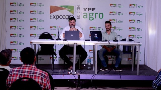 El ingeniero agrónomo José M. Jáuregui y el médico veterinario Juan Cruz Muriel, gerente del Servicio de Asesores Técnicos de Biogénesis Bagó, participaron de la charla "Mitos ganaderos: poniéndole ciencia al relato", donde presentaron nuevos enfoques para la producción ganadera sostenible.