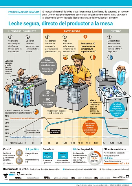 En 2020, el Instituto de Investigación y Desarrollo Tecnológico para la Agricultura Familiar (IPAF) del INTA en la Región Pampeana y la UBA presentó el desarrollo de una ensachetadora y pasteurizadora que envasa la leche fluida, la pasteuriza y la enfría directamente en sachet con el fin garantizar las condiciones óptimas de inocuidad para su comercialización.