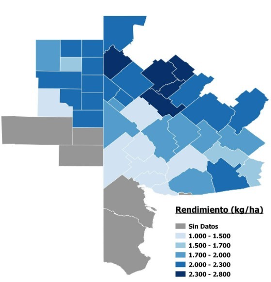 ZONA SUR: Se estima un rinde de 1.700 kg/ha (+21%) en la zona, con máximos registrados en los departamentos de Atreucó (2.000 kg/ha) y Capital (1.900 kg/ha).