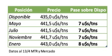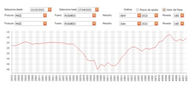 En Maíz, el análisis pasa por NO perderse el diferencial de precio de la mercadería disponible sobre la futura, que después de haber tocado picos sobre principios de marzo (45 u$s/tns), viene recortando la brecha (15,5 u$s/tns).