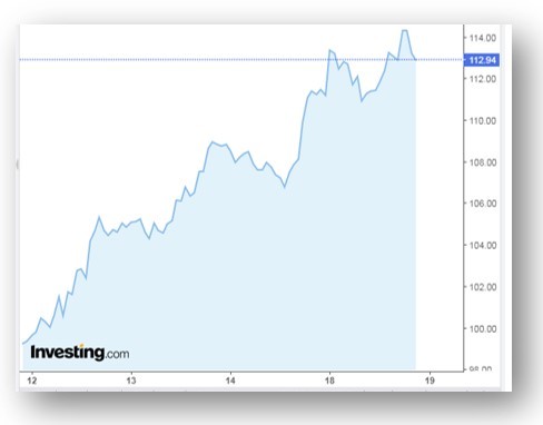 En segundo lugar, se destaca la evolución del precio del petróleo, que sigue en ascenso.