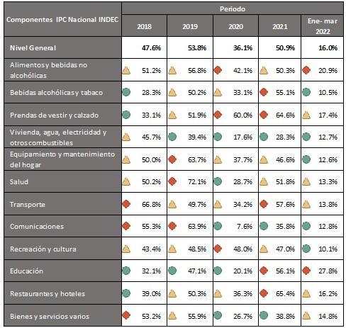En el informe del CES aborda, a nivel local, la problemática descripta de manera pormenorizada del Índice de Precios a Nivel General y de sus componentes, tomando como período de referencia: enero de 2018 a marzo de 2022.