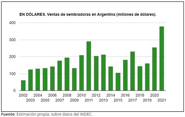 Medida en dólares, la facturación del segmento de sembradoras marcó un récord histórico durante el año pasado, con operaciones por U$S 379,2 millones.