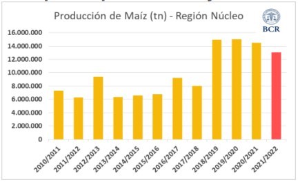 Al comienzo de la campaña, todos señalaban al maíz como el cultivo del año. La campaña 2021/22 marcó un nuevo hito: fue la mayor siembra de los últimos 12 años. Los resultados preliminares del trabajo con imágenes satelitales realizados por GEA muestran que este año se sembró más maíz que lo estimado: hay 92.000 ha extras. La cifra se actualiza a 1,94 M ha, el salto interanual ha sido de un 20%. Y Hubiese sido el gran año del maíz porque con un escenario normal el horizonte productivo era de 18,4 Mt, cifra inédita para la región. Pero la falta de lluvias a partir de mediados de diciembre puso al cereal contra las cuerdas. Si bien aún falta la cosecha de los maíces tardíos y de segunda, el rinde promedio del maíz de la región se estima en 70,9 qq/ha, muy lejos de los 100 qq/ha de promedio de los últimos 5 años. Finalmente, la campaña será de 12,7 Mt, un 31% menos de lo que se esperaba a la siembra.