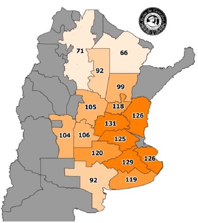 El Norte de Santa Fe y Sudoeste de la provincia de Buenos Aires y Sur de La Pampa presentaron los valores más bajos, debido a la utilización de labranza como mecanismo de control de malezas resistentes y al precio de los fitosanitarios y combustibles.
