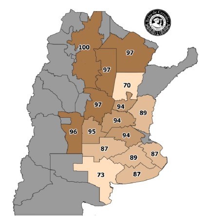 Por otro lado, el mapa 1 muestra la adopción de siembra directa a escala regional para la campaña 2021/22. La misma estuvo en un rango de 70% a 100%, esta variación está relacionada a distintas causas regionales.