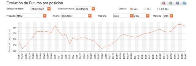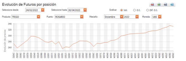 Desde el inicio de la invasión el día 24 de febrero el maíz en el mercado local matbarofex tuvo su techo más alto en valores de U$S 270. El trigo llegó a niveles máximos de U$S 335.5, concertado en el mercado durante la anterior semana.