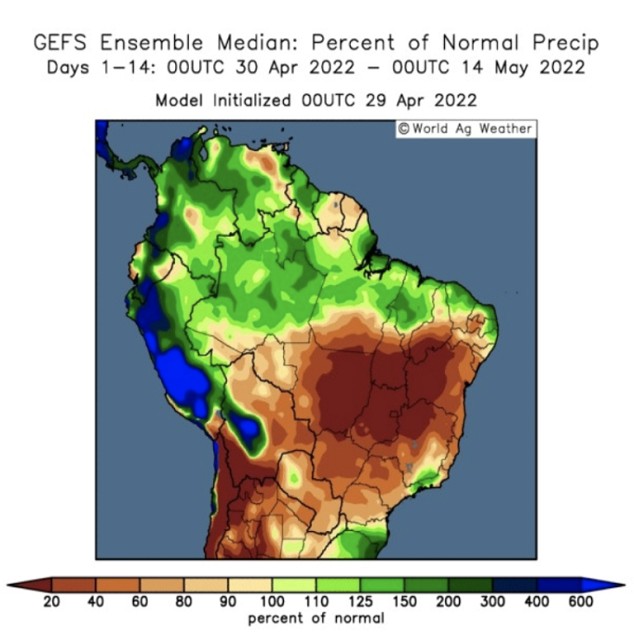 Reuters informa que el principal estado productor de granos de Brasil sufre en el mes de abril el clima más seco de los últimos 17 años.