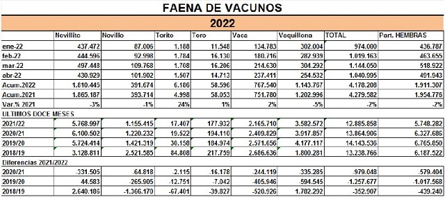Faena mensual - Abril 2022: 1.041 mil cabezas.