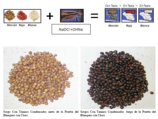 Para poder realizar los contratos de calidad, hoy contamos con la Norma de Calidad para la Comercialización de Sorgo Resolución 554/2011 que clasifica a los Sorgos por Color y Contenido de Taninos. La definición de Sorgos sin Taninos es la siguiente siendo asimismo la Prueba del Blanqueo del Cloro la que se utiliza a tal fin: Sorgo Bajo tanino o sin taninos condensados: Lote o partida que contenga no más de CINCO POR CIENTO (5%) de granos con taninos condensados. Entiéndase por granos con taninos condensados, aquellos que son identificados como tales en la "prueba de blanqueo con hipoclorito de sodio (lavandina) con base hidróxido de sodio".