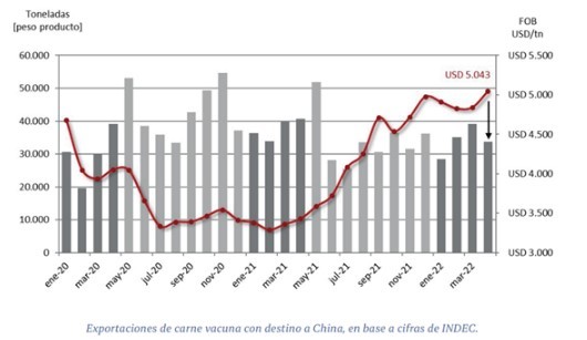 La falta de operarios en las terminales reduce drásticamente la capacidad operativa de ese puerto, que mueve cerca del 20% del tráfico de contenedores del gigante asiático. La importante congestión de buques y contenedores varados a causa de las restricciones sanitarias, ralentiza todo el flujo marítimo afectando especialmente el transporte de alimentos en frío, entre ellos la carne. De acuerdo a los datos informados por la Administración de Aduanas de la República Popular China, durante el mes de abril ingresó al país un total de 192 mil toneladas de carne vacuna, apenas un 5% menos de lo ingresado en marzo. Claramente el efecto aún no se percibe en las cifras registradas en destino durante ese mes. Pero si analizamos las cifras de salida desde origen -embarques que se verán reflejados como arribos a partir de mayo, ya se percibe un impacto mayor. Durante el mes de abril, las exportaciones de carne vacuna argentina con destino China sumaron 33.750 toneladas peso producto, un 14% menos que lo embarcado en marzo.