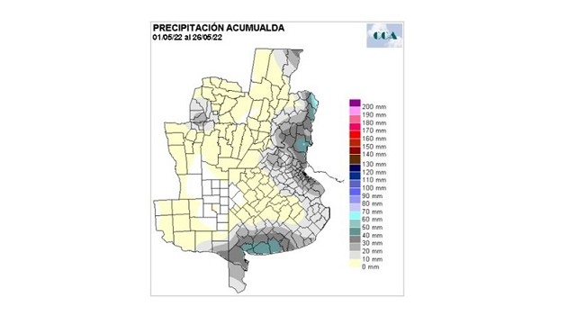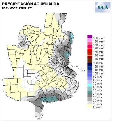 Se reconoce lo comentado, la escasez pluvial en gran parte de la franja oeste del país, algo que en este mes de mayo, también sumo a la provincia de SF, situación que es una fuerte anomalía, ya que durante mayo, ésta es una provincia que suele sumar.